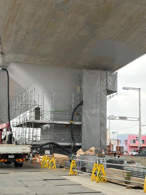 この2つの足場を解体したら帰ります 国道側は、夜勤作業しかできないので一気に無理です 工程は、夜勤2日、昼3日 あるのでなんとか3人でいけそうです 頑張ります ご安全に!iPhoneから送信◉